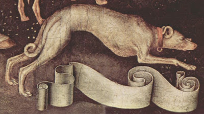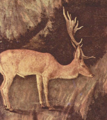 Looking at the paintings of the early Italian Renaissance painter Pisanello just now, I was struck by how wonderfully delicate and accurate his paintings of animals are. If he had lived in a different time or created these images in a different context (one of scientific learning rather than courtly patronage) I'm convinced that Pisanello would have been a famous naturalist. Here are a few cropped images I've made, deriving primarily from his lovely paintings The Vision of Saint Eustace (c. 1438) and Portrait of a Princess of the House of Este (c. 1440s?).